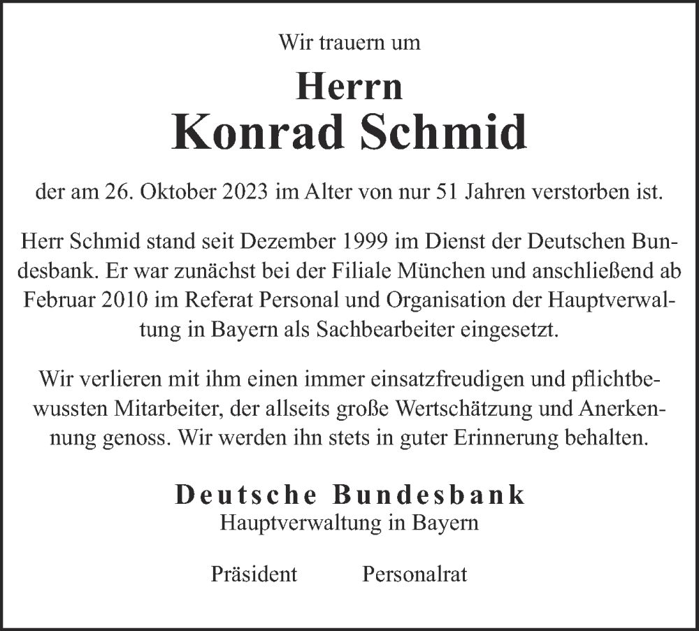 Hier finden Sie alle Traueranzeigen aus der Zeitung, die bisher für Konrad Schmid erschienen sind. Weitere Traueranzeigen, die in der Zeitung erscheinen, werden hier ebenfalls aufgelistet