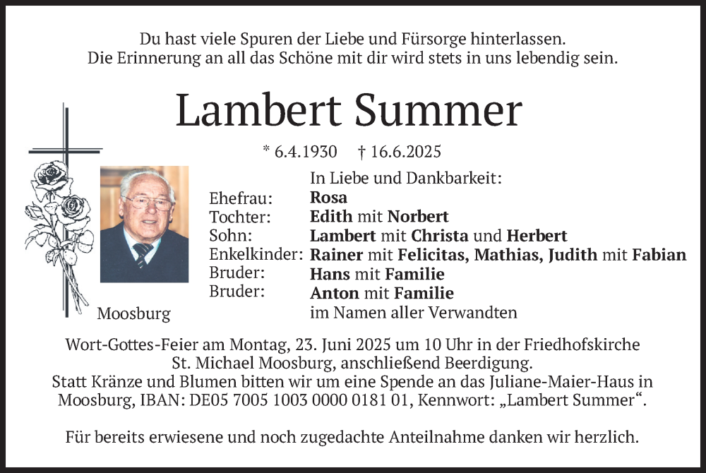 Hier finden Sie alle Traueranzeigen aus der Zeitung, die bisher für Lambert Summer erschienen sind. Weitere Traueranzeigen, die in der Zeitung erscheinen, werden hier ebenfalls aufgelistet