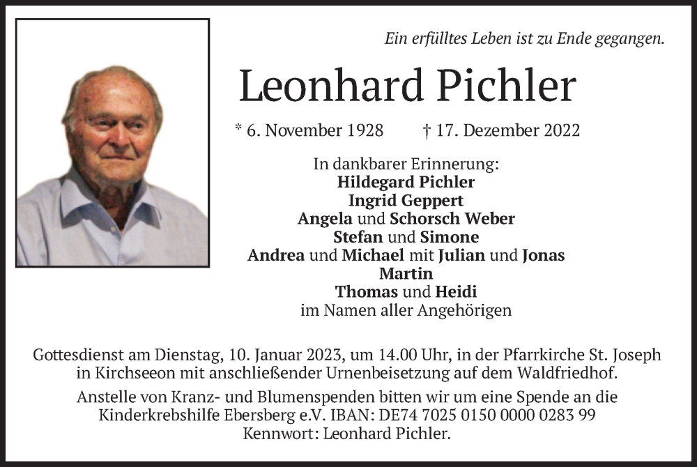 Hier finden Sie alle Traueranzeigen aus der Zeitung, die bisher für Leonhard Pichler erschienen sind. Weitere Traueranzeigen, die in der Zeitung erscheinen, werden hier ebenfalls aufgelistet