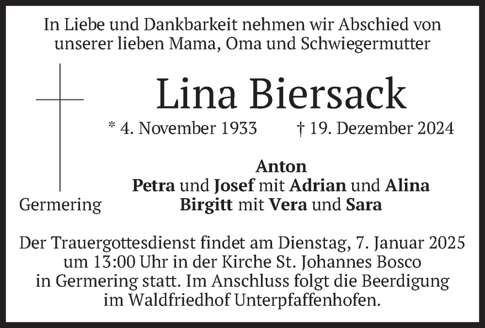 Hier finden Sie alle Traueranzeigen aus der Zeitung, die bisher für Lina Biersack erschienen sind. Weitere Traueranzeigen, die in der Zeitung erscheinen, werden hier ebenfalls aufgelistet