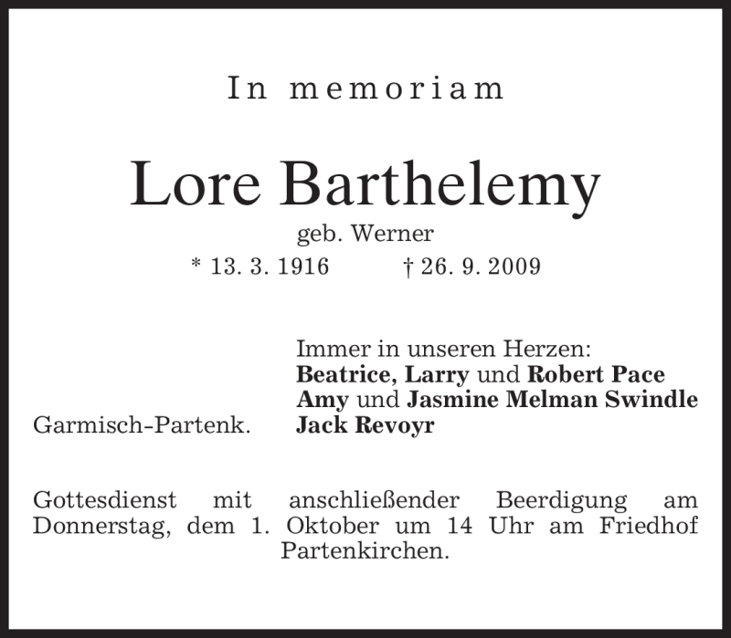Hier finden Sie alle Traueranzeigen aus der Zeitung, die bisher für Lore Barthelemy erschienen sind. Weitere Traueranzeigen, die in der Zeitung erscheinen, werden hier ebenfalls aufgelistet