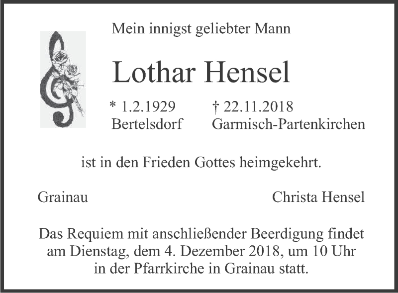 Hier finden Sie alle Traueranzeigen aus der Zeitung, die bisher für Lothar Hensel erschienen sind. Weitere Traueranzeigen, die in der Zeitung erscheinen, werden hier ebenfalls aufgelistet