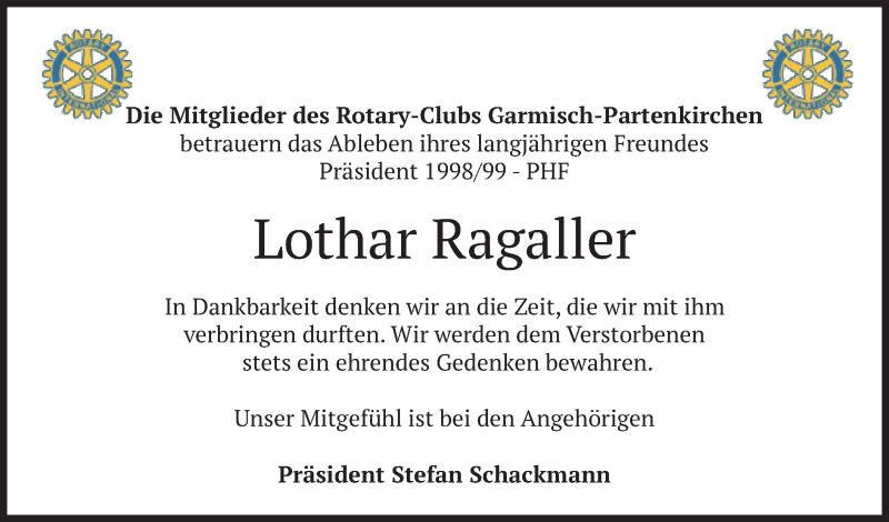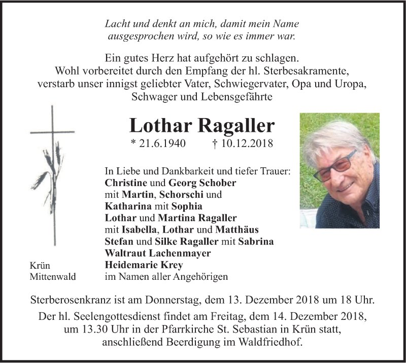 Hier finden Sie alle Traueranzeigen aus der Zeitung, die bisher für Lothar Ragaller erschienen sind. Weitere Traueranzeigen, die in der Zeitung erscheinen, werden hier ebenfalls aufgelistet