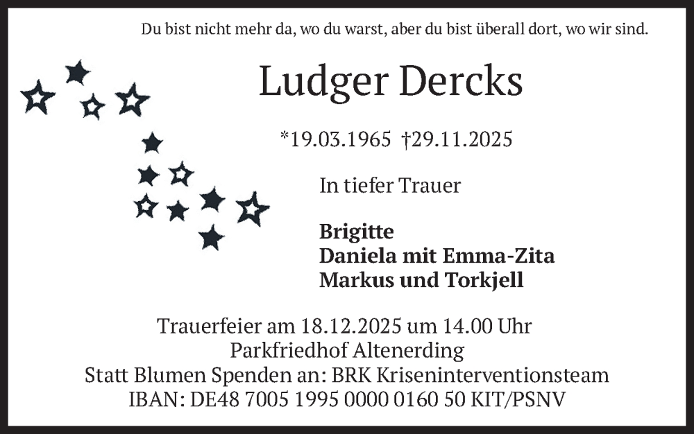 Hier finden Sie alle Traueranzeigen aus der Zeitung, die bisher für Ludger Dercks erschienen sind. Weitere Traueranzeigen, die in der Zeitung erscheinen, werden hier ebenfalls aufgelistet