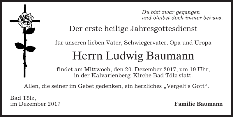Hier finden Sie alle Traueranzeigen aus der Zeitung, die bisher für Ludwig Baumann erschienen sind. Weitere Traueranzeigen, die in der Zeitung erscheinen, werden hier ebenfalls aufgelistet