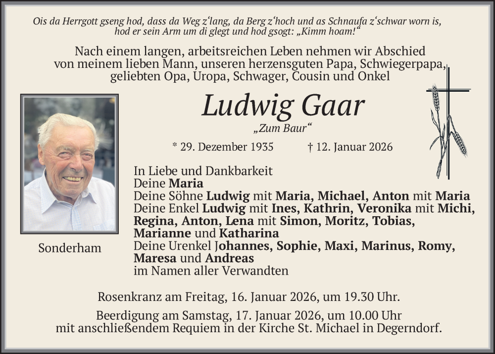 Hier finden Sie alle Traueranzeigen aus der Zeitung, die bisher für Ludwig Gaar erschienen sind. Weitere Traueranzeigen, die in der Zeitung erscheinen, werden hier ebenfalls aufgelistet