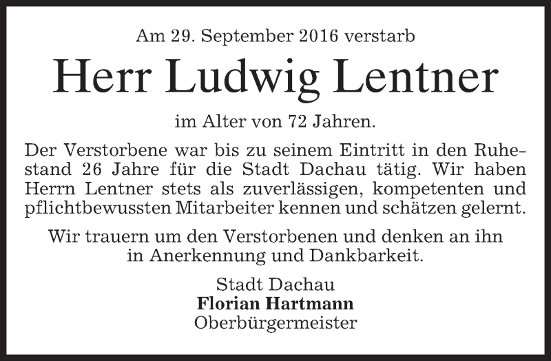 Hier finden Sie alle Traueranzeigen aus der Zeitung, die bisher für Ludwig Lentner erschienen sind. Weitere Traueranzeigen, die in der Zeitung erscheinen, werden hier ebenfalls aufgelistet