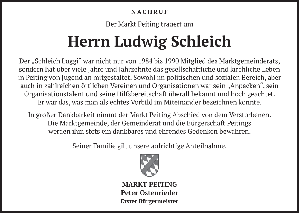 Hier finden Sie alle Traueranzeigen aus der Zeitung, die bisher für Ludwig Schleich erschienen sind. Weitere Traueranzeigen, die in der Zeitung erscheinen, werden hier ebenfalls aufgelistet
