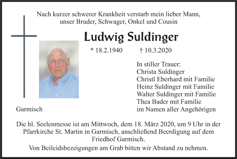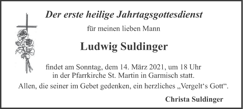 Hier finden Sie alle Traueranzeigen aus der Zeitung, die bisher für Ludwig Suldinger erschienen sind. Weitere Traueranzeigen, die in der Zeitung erscheinen, werden hier ebenfalls aufgelistet