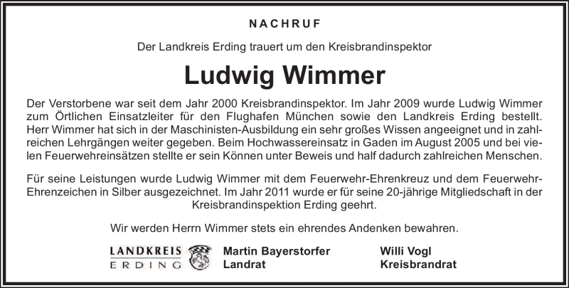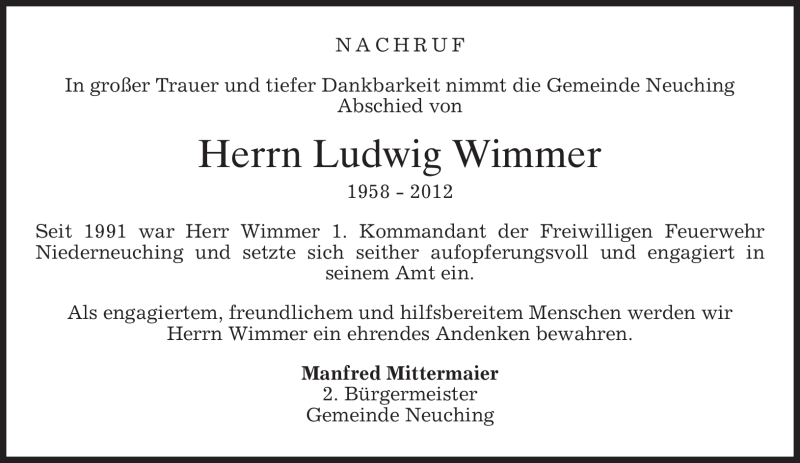 Hier finden Sie alle Traueranzeigen aus der Zeitung, die bisher für Ludwig Wimmer erschienen sind. Weitere Traueranzeigen, die in der Zeitung erscheinen, werden hier ebenfalls aufgelistet