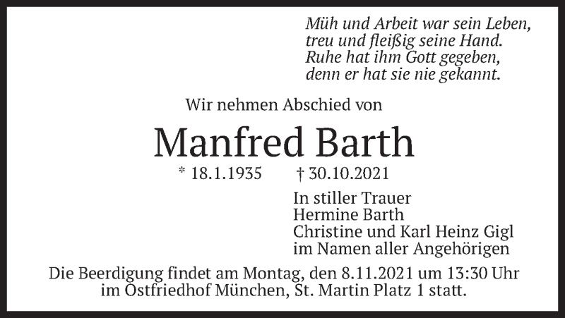 Hier finden Sie alle Traueranzeigen aus der Zeitung, die bisher für Manfred Barth erschienen sind. Weitere Traueranzeigen, die in der Zeitung erscheinen, werden hier ebenfalls aufgelistet