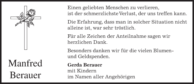 Hier finden Sie alle Traueranzeigen aus der Zeitung, die bisher für Manfred Berauer erschienen sind. Weitere Traueranzeigen, die in der Zeitung erscheinen, werden hier ebenfalls aufgelistet