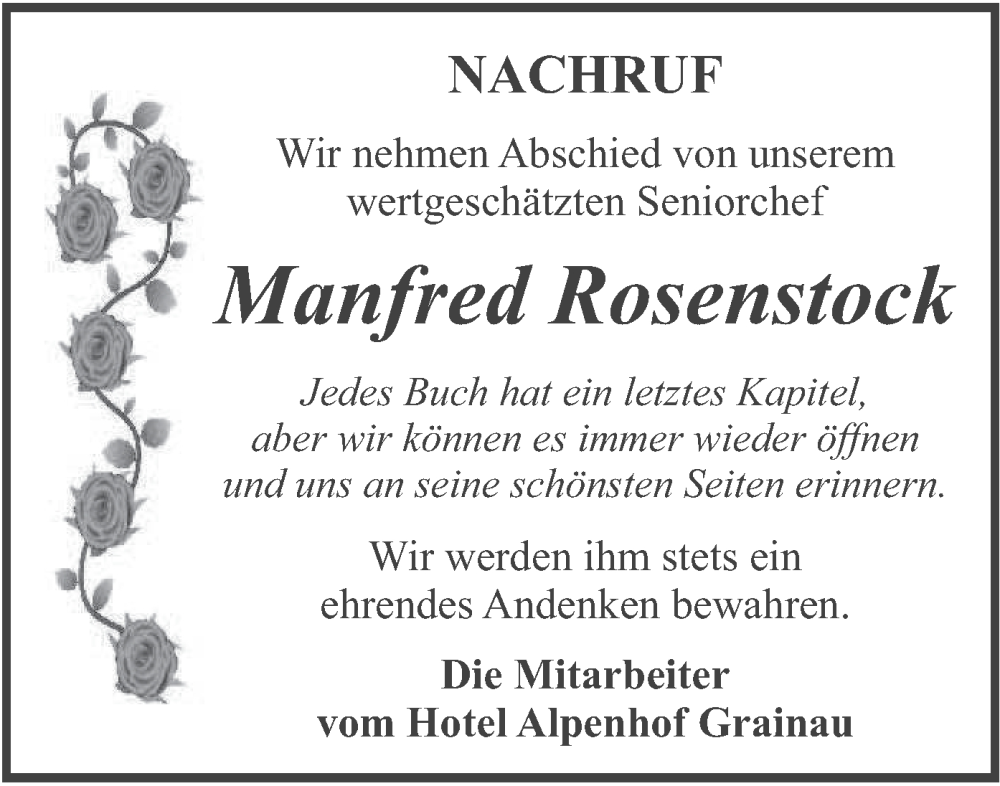 Hier finden Sie alle Traueranzeigen aus der Zeitung, die bisher für Manfred Rosenstock erschienen sind. Weitere Traueranzeigen, die in der Zeitung erscheinen, werden hier ebenfalls aufgelistet