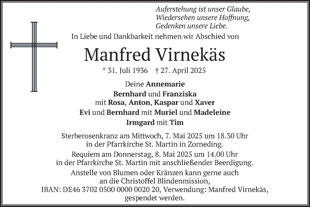 Hier finden Sie alle Traueranzeigen aus der Zeitung, die bisher für Manfred Virnekäs erschienen sind. Weitere Traueranzeigen, die in der Zeitung erscheinen, werden hier ebenfalls aufgelistet