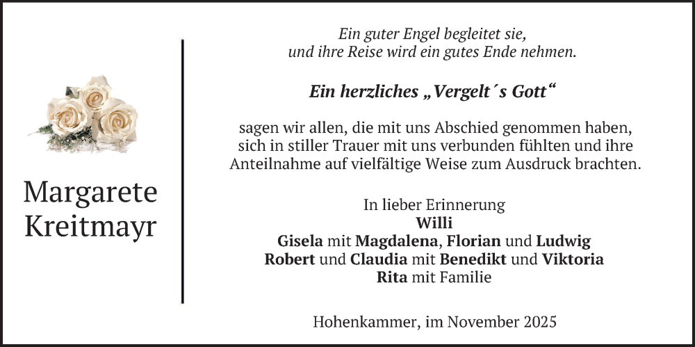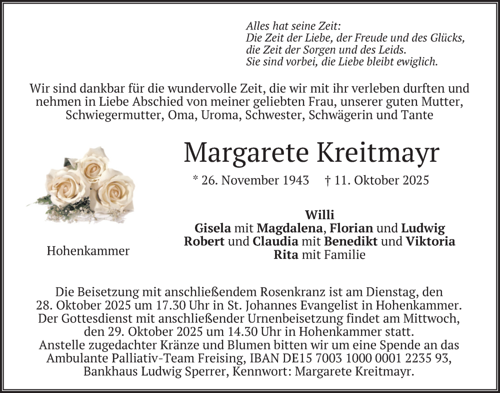 Hier finden Sie alle Traueranzeigen aus der Zeitung, die bisher für Margarete Kreitmayr erschienen sind. Weitere Traueranzeigen, die in der Zeitung erscheinen, werden hier ebenfalls aufgelistet