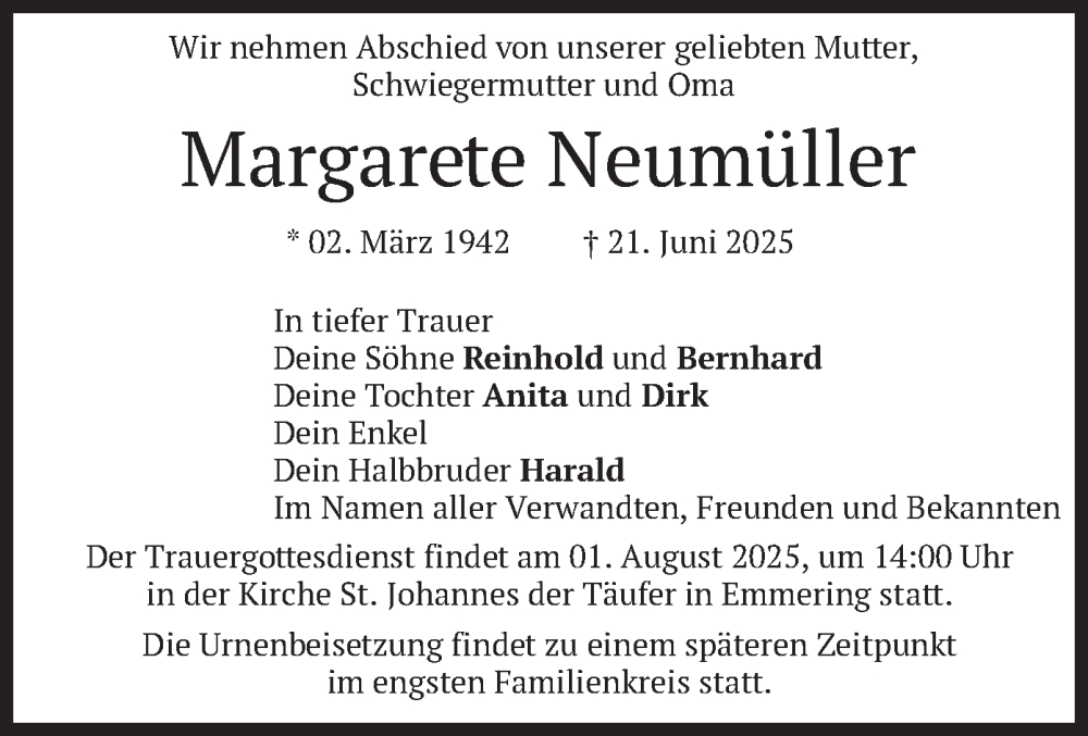Hier finden Sie alle Traueranzeigen aus der Zeitung, die bisher für Margarete Neumüller erschienen sind. Weitere Traueranzeigen, die in der Zeitung erscheinen, werden hier ebenfalls aufgelistet