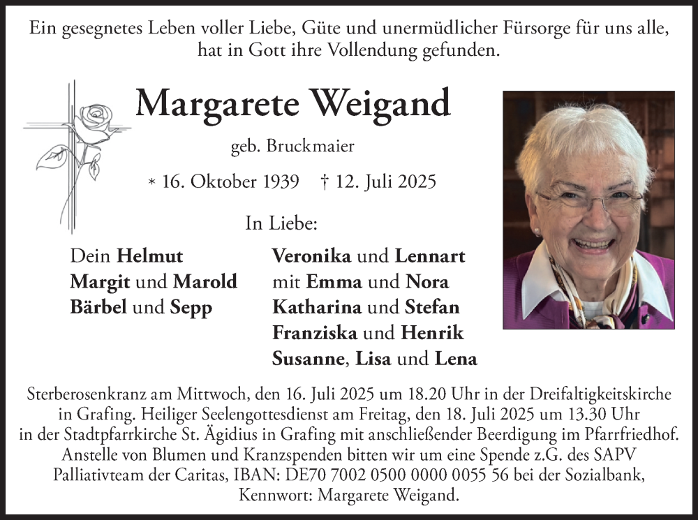 Hier finden Sie alle Traueranzeigen aus der Zeitung, die bisher für Margarete Weigand erschienen sind. Weitere Traueranzeigen, die in der Zeitung erscheinen, werden hier ebenfalls aufgelistet
