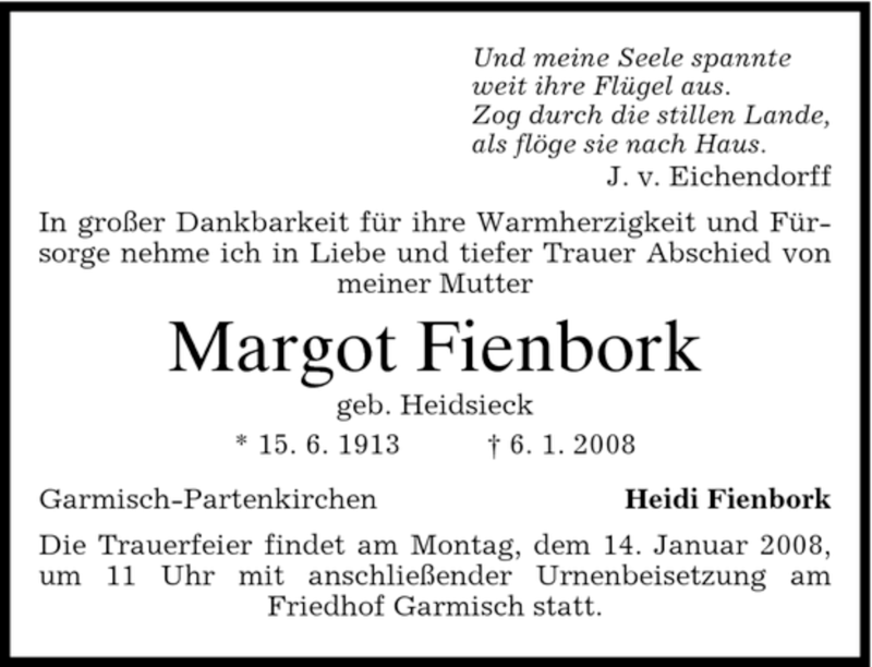 Hier finden Sie alle Traueranzeigen aus der Zeitung, die bisher für Margot Fienbork erschienen sind. Weitere Traueranzeigen, die in der Zeitung erscheinen, werden hier ebenfalls aufgelistet