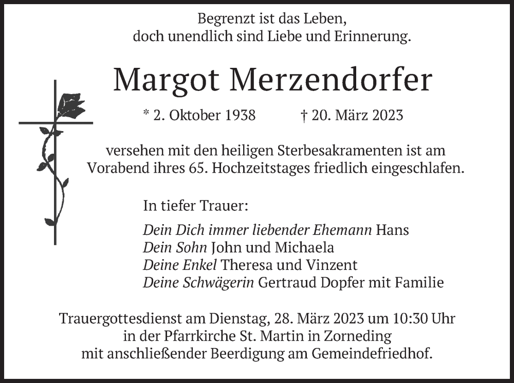 Hier finden Sie alle Traueranzeigen aus der Zeitung, die bisher für Margot Merzendorfer erschienen sind. Weitere Traueranzeigen, die in der Zeitung erscheinen, werden hier ebenfalls aufgelistet