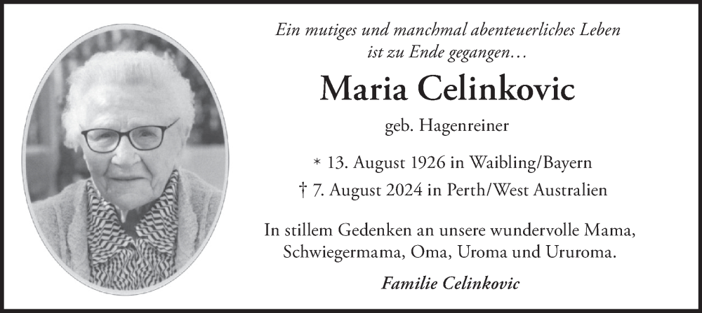 Hier finden Sie alle Traueranzeigen aus der Zeitung, die bisher für Maria Celinkovic erschienen sind. Weitere Traueranzeigen, die in der Zeitung erscheinen, werden hier ebenfalls aufgelistet