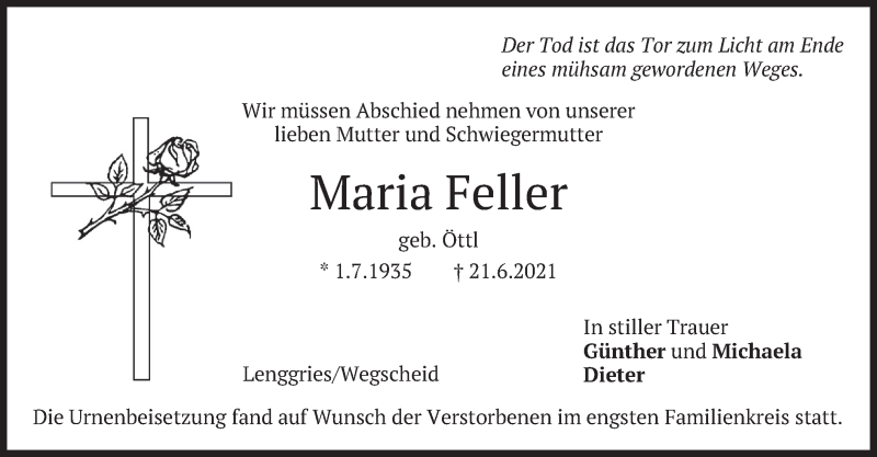 Hier finden Sie alle Traueranzeigen aus der Zeitung, die bisher für Maria Feller erschienen sind. Weitere Traueranzeigen, die in der Zeitung erscheinen, werden hier ebenfalls aufgelistet