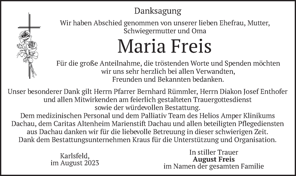 Hier finden Sie alle Traueranzeigen aus der Zeitung, die bisher für Maria Freis erschienen sind. Weitere Traueranzeigen, die in der Zeitung erscheinen, werden hier ebenfalls aufgelistet