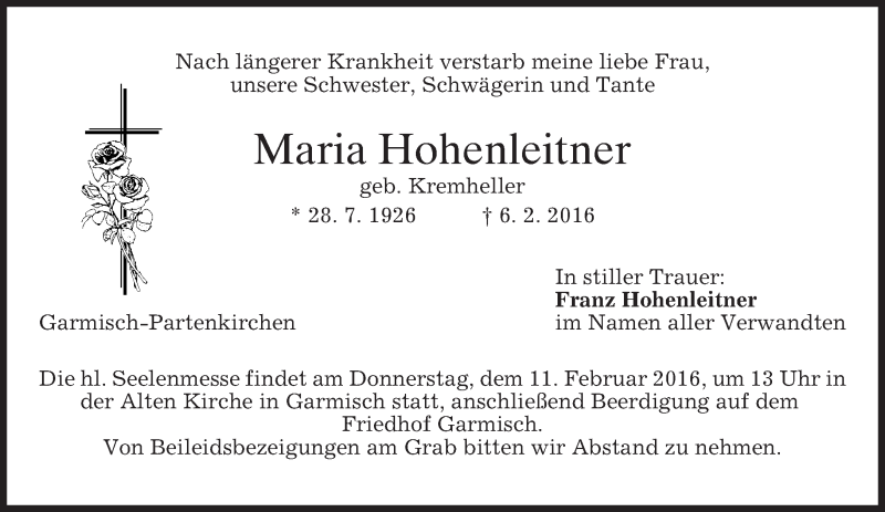 Hier finden Sie alle Traueranzeigen aus der Zeitung, die bisher für Maria Hohenleitner erschienen sind. Weitere Traueranzeigen, die in der Zeitung erscheinen, werden hier ebenfalls aufgelistet