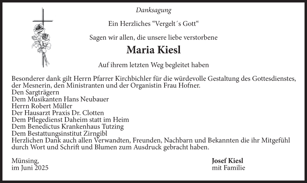 Hier finden Sie alle Traueranzeigen aus der Zeitung, die bisher für Maria Kiesl erschienen sind. Weitere Traueranzeigen, die in der Zeitung erscheinen, werden hier ebenfalls aufgelistet
