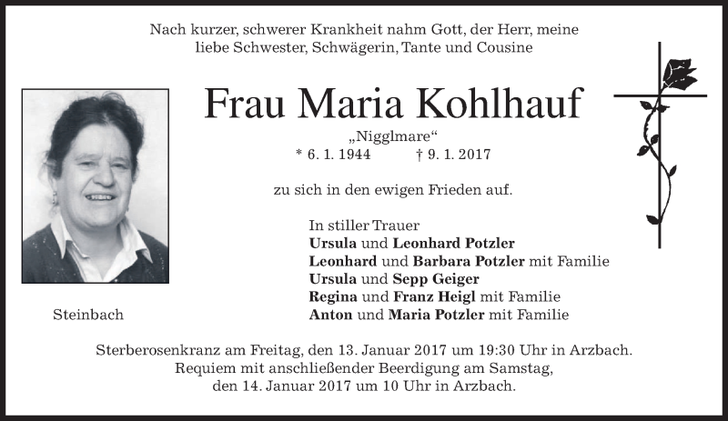 Hier finden Sie alle Traueranzeigen aus der Zeitung, die bisher für Maria Kohlhauf erschienen sind. Weitere Traueranzeigen, die in der Zeitung erscheinen, werden hier ebenfalls aufgelistet