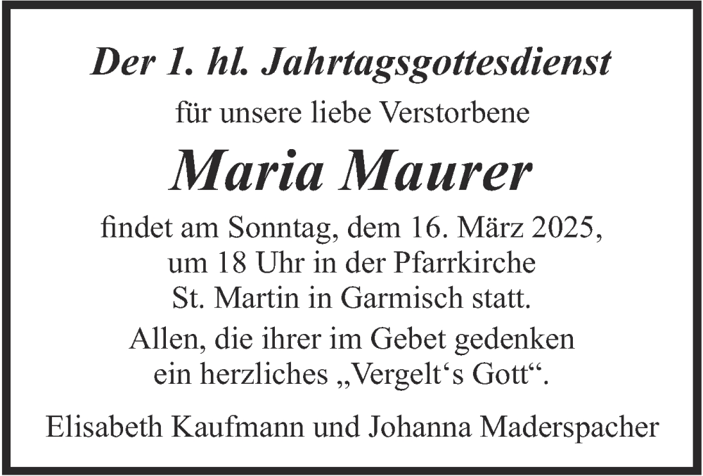Hier finden Sie alle Traueranzeigen aus der Zeitung, die bisher für Maria Maurer erschienen sind. Weitere Traueranzeigen, die in der Zeitung erscheinen, werden hier ebenfalls aufgelistet