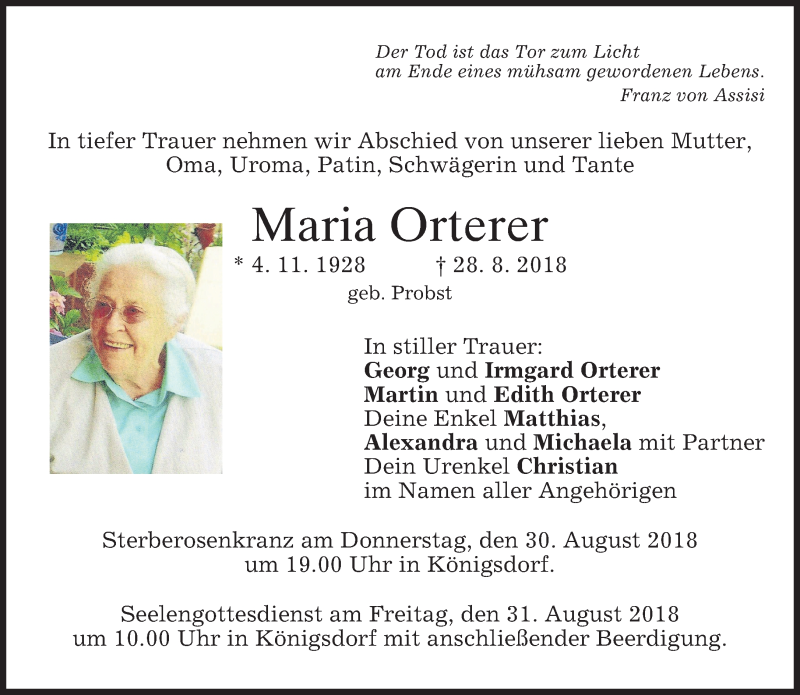 Hier finden Sie alle Traueranzeigen aus der Zeitung, die bisher für Maria Orterer erschienen sind. Weitere Traueranzeigen, die in der Zeitung erscheinen, werden hier ebenfalls aufgelistet