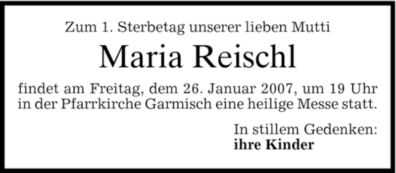 Hier finden Sie alle Traueranzeigen aus der Zeitung, die bisher für Maria Reischl erschienen sind. Weitere Traueranzeigen, die in der Zeitung erscheinen, werden hier ebenfalls aufgelistet