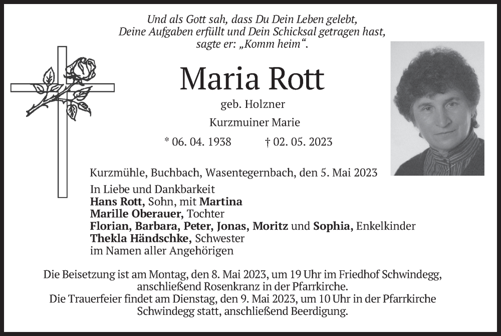 Hier finden Sie alle Traueranzeigen aus der Zeitung, die bisher für Maria Rott erschienen sind. Weitere Traueranzeigen, die in der Zeitung erscheinen, werden hier ebenfalls aufgelistet