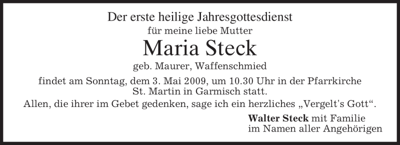 Hier finden Sie alle Traueranzeigen aus der Zeitung, die bisher für Maria Steck erschienen sind. Weitere Traueranzeigen, die in der Zeitung erscheinen, werden hier ebenfalls aufgelistet