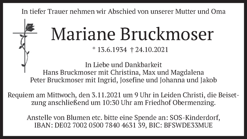 Hier finden Sie alle Traueranzeigen aus der Zeitung, die bisher für Mariane Bruckmoser erschienen sind. Weitere Traueranzeigen, die in der Zeitung erscheinen, werden hier ebenfalls aufgelistet
