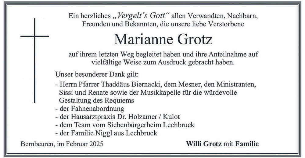 Hier finden Sie alle Traueranzeigen aus der Zeitung, die bisher für Marianne Grotz erschienen sind. Weitere Traueranzeigen, die in der Zeitung erscheinen, werden hier ebenfalls aufgelistet