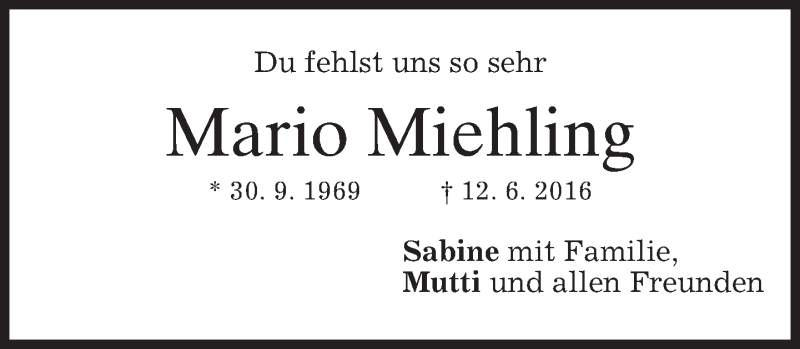 Hier finden Sie alle Traueranzeigen aus der Zeitung, die bisher für Mario Miehling erschienen sind. Weitere Traueranzeigen, die in der Zeitung erscheinen, werden hier ebenfalls aufgelistet