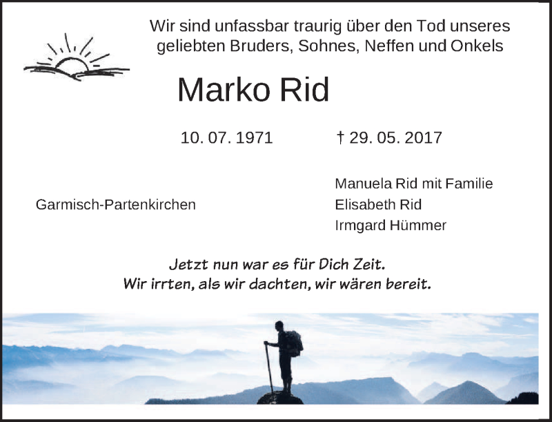 Hier finden Sie alle Traueranzeigen aus der Zeitung, die bisher für Marko Rid erschienen sind. Weitere Traueranzeigen, die in der Zeitung erscheinen, werden hier ebenfalls aufgelistet