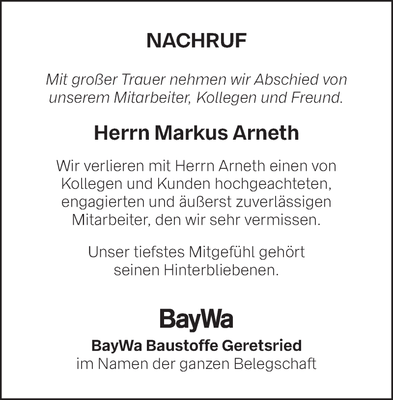 Hier finden Sie alle Traueranzeigen aus der Zeitung, die bisher für Markus Arneth erschienen sind. Weitere Traueranzeigen, die in der Zeitung erscheinen, werden hier ebenfalls aufgelistet