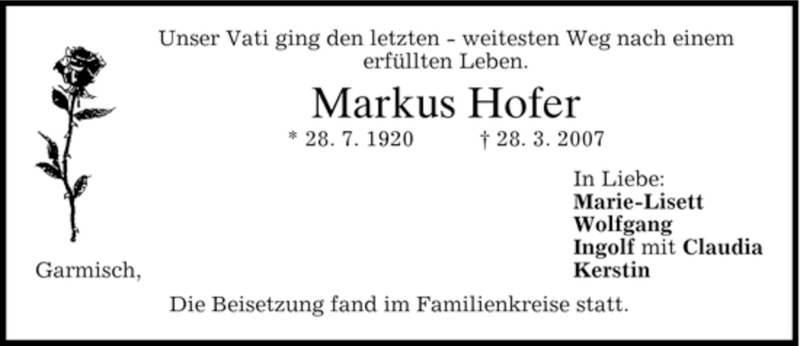 Hier finden Sie alle Traueranzeigen aus der Zeitung, die bisher für Markus Hofer erschienen sind. Weitere Traueranzeigen, die in der Zeitung erscheinen, werden hier ebenfalls aufgelistet