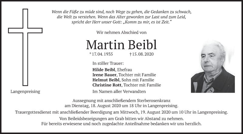 Hier finden Sie alle Traueranzeigen aus der Zeitung, die bisher für Martin Beibl erschienen sind. Weitere Traueranzeigen, die in der Zeitung erscheinen, werden hier ebenfalls aufgelistet