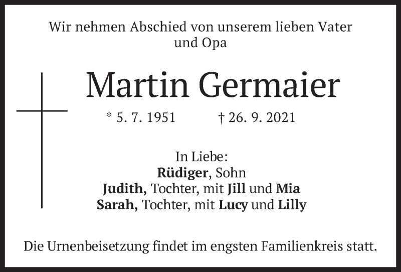 Hier finden Sie alle Traueranzeigen aus der Zeitung, die bisher für Martin Germaier erschienen sind. Weitere Traueranzeigen, die in der Zeitung erscheinen, werden hier ebenfalls aufgelistet