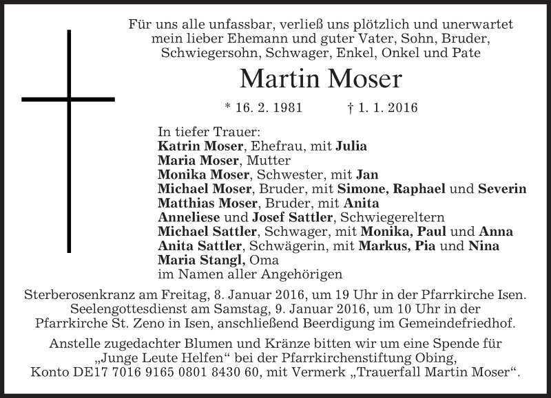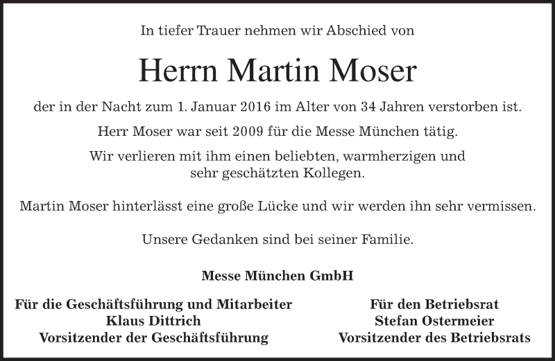 Hier finden Sie alle Traueranzeigen aus der Zeitung, die bisher für Martin Moser erschienen sind. Weitere Traueranzeigen, die in der Zeitung erscheinen, werden hier ebenfalls aufgelistet