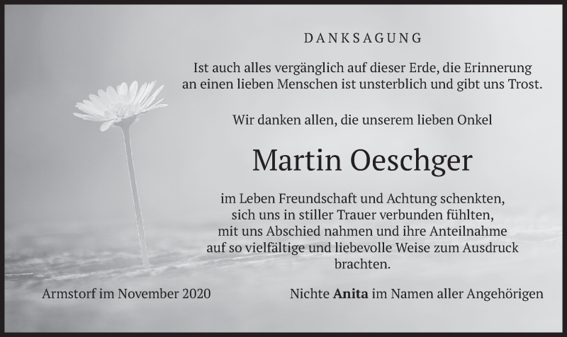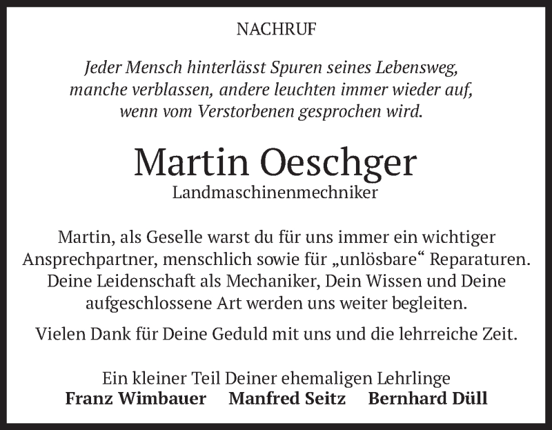Hier finden Sie alle Traueranzeigen aus der Zeitung, die bisher für Martin Oeschger erschienen sind. Weitere Traueranzeigen, die in der Zeitung erscheinen, werden hier ebenfalls aufgelistet