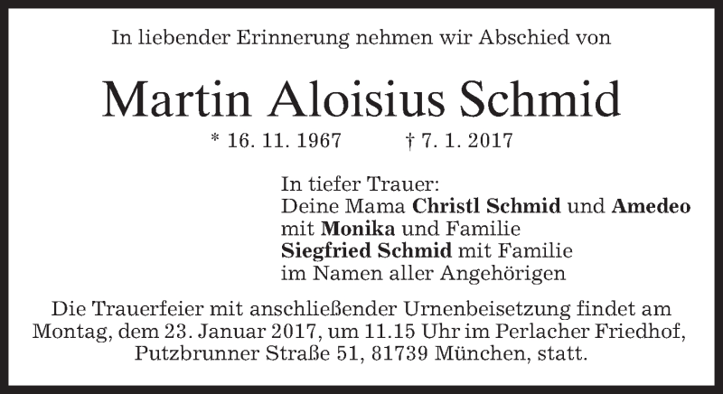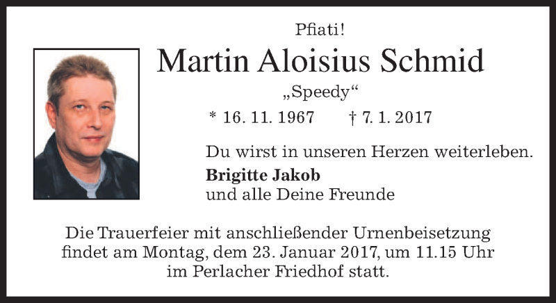 Hier finden Sie alle Traueranzeigen aus der Zeitung, die bisher für Martin Aloisius Schmid erschienen sind. Weitere Traueranzeigen, die in der Zeitung erscheinen, werden hier ebenfalls aufgelistet