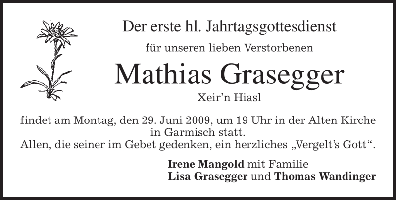 Hier finden Sie alle Traueranzeigen aus der Zeitung, die bisher für Mathias Grasegger erschienen sind. Weitere Traueranzeigen, die in der Zeitung erscheinen, werden hier ebenfalls aufgelistet