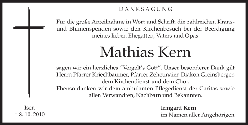 Hier finden Sie alle Traueranzeigen aus der Zeitung, die bisher für Mathias Kern erschienen sind. Weitere Traueranzeigen, die in der Zeitung erscheinen, werden hier ebenfalls aufgelistet