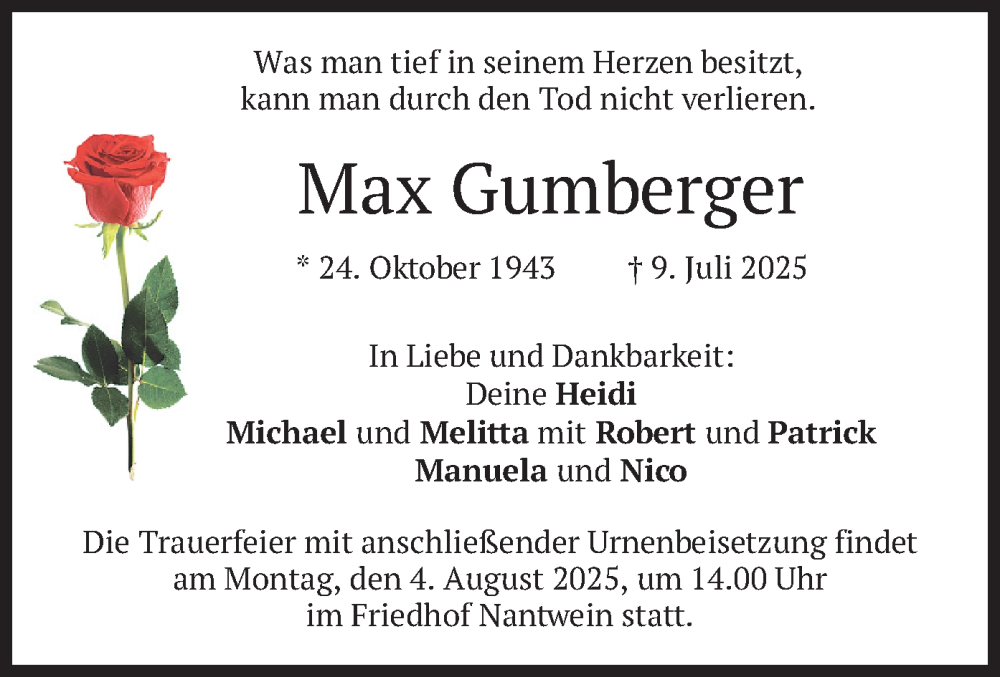Hier finden Sie alle Traueranzeigen aus der Zeitung, die bisher für Max Gumberger erschienen sind. Weitere Traueranzeigen, die in der Zeitung erscheinen, werden hier ebenfalls aufgelistet