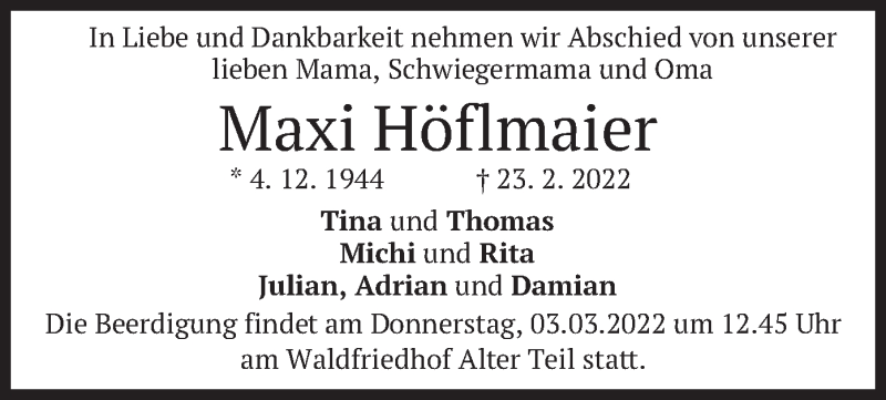 Hier finden Sie alle Traueranzeigen aus der Zeitung, die bisher für Maxi Höflmaier erschienen sind. Weitere Traueranzeigen, die in der Zeitung erscheinen, werden hier ebenfalls aufgelistet