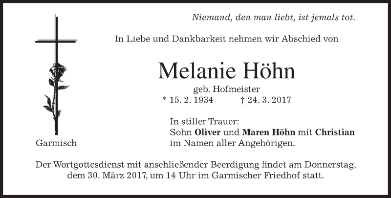 Hier finden Sie alle Traueranzeigen aus der Zeitung, die bisher für Melanie Höhn erschienen sind. Weitere Traueranzeigen, die in der Zeitung erscheinen, werden hier ebenfalls aufgelistet